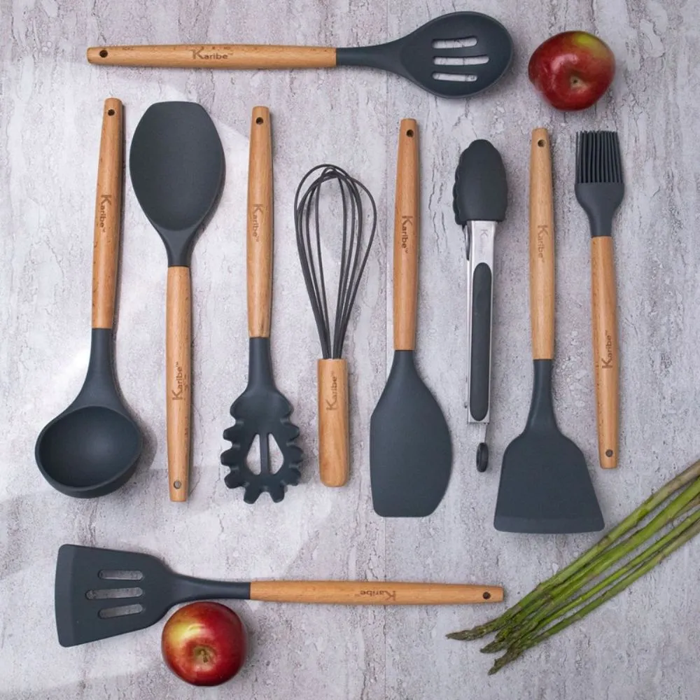 - Multi- Purpose Silicone And Wood Utensil Set