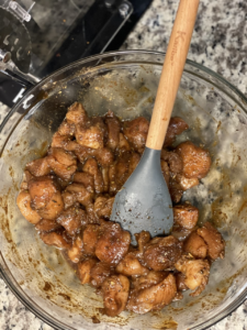 - 2 Ibs Diced Chicken Breast was used here but you can use thighs as well